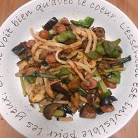 - 4 3にうどんを入れほぐしながら炒め、塩こしょうを加えます。