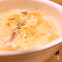 ホワイトソースが簡単に作れると好評で、グラタン初心者でも失敗知らず。大根とハムの組み合わせがベースですが、アスパラやほうれん草を加えたり、ベーコンやウインナーに変更したりとアレンジ自在。味噌が隠し味のアクセントとなって和風な味わいに。チーズは多めが人気で、具材とソースを混ぜ合わせてから焼くのがおすすめです。ヘルシーでご飯にも合う一品です。