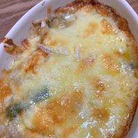 - 5 耐熱容器に2を入れ、4をかけてピザ用チーズを乗せ、オーブントースターで10分程焼きます。