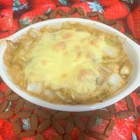 - 7 耐熱皿に入れ、ピザ用チーズをのせ、オーブントースターで焼き色が付くまで10分程焼いてできあがりです。
