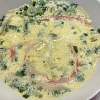 卵1個で作りました!他の方のレポを参考に、500wで2分1分でちょうど良かったです。カニカマが無かったので仕上げにチーズとネギを散らしたらとても美味しかったです(*´ч`*)