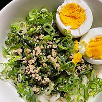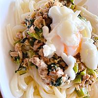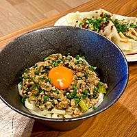 戴き物の讃岐うどんが賞味期限間近だったので、美味しく食べれるメニューはと、家にある材料で出来るので、これを選び作ってみました。材料4倍で、少し残ってたもやしも刻んで入れて、ひき肉はごま油で炒めて簡単でした。白ネギ刻んで、温泉卵を載せて、ドレッシングを少しかけた方が、そのままより美味しかったです。ラー油は省きました。
