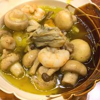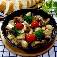 きのこの旨味が凝縮されたアツアツのアヒージョは、しめじ、エリンギ、舞茸などの食感が楽しめる一品です。にんにくはホクホクに火が通り、まろやかな味わいに。アンチョビの塩気とオリーブオイルの香りが食欲をそそり、バゲットを浸して食べると絶品です。ミニトマトやブロッコリーを加えれば彩りも鮮やか。シンプルながらお店のような本格的な味わいで、ワインとの相性も抜群です。