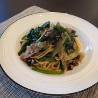 味付けはめんつゆで!お手軽和風パスタです。 豚肉が入っているので食べ応えがあります。 ほうれん草はパスタと一緒に茹でるので、時短にもなります。 捨ててしまいがちな長ねぎの青い部分を有効活用した、ボリューム満点のレシピです。