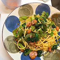 今回はパスタを茹でた後のお湯でほうれん草を茹でることでお湯を沸かす手間を省いています。ほうれん草は茹でるとアクや緑の色素が茹で汁に出るので、必ずパスタを茹でた後に茹でてください。気になる方は、1000mlのお湯に塩小さじ2〜3のお湯を新たに沸かして茹でてください。 調味料の加減は、お好みで調整してください。