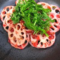 - 5 ボウルに3と(A)を混ぜ、粗熱が取れたレンコンを加えて和えたらできあがりです。お好みで大葉の千切りをかけてください。