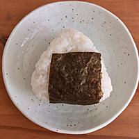 - 5 2等分にしてラップに広げ、3をのせて握ります。ラップを外し、味つけのりを巻きます。
