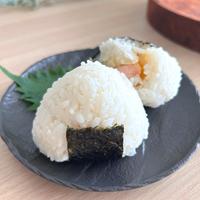 鮭マヨおにぎりのご紹介です。鮭にマヨネーズと大葉を混ぜた具材を包みました。大葉を加えることでさわやかな風味が楽しめますよ。簡単に作れるので、ぜひお試しくださいね。