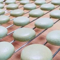 マカロナージュとは、卵白と粉類を混ぜ合わせる時にメレンゲの泡を優しく潰しながら混ぜていく作業の事を言います。 5、6の手順の時、混ぜ過ぎると膨らまなくなりますが、混ぜ足りないと生地に空気が残りすぎるので、表面が割れてしまいます。マカロナージュをしっかりしてください。 手順7では表面をしっかり乾かさないと加熱時表面が割れてしまうので、しっかり乾かしてください。 マカロンは気温や湿度によって乾燥時間やメレンゲの状態が変わってきます。 オーブンは必ず予熱を完了させてから焼いてください。 予熱機能のないオーブンの場合は温度を設定し10分加熱を行った後、焼き始めてください。 ご使用のオーブンの機種や使用年数等により、火力に誤差が生じる事があります。焼き時間は目安にし、必ず調整を行ってください。 焼き色が付きすぎてしまう場合は、アルミホイルをかけてください。