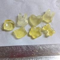 シリコンモールドで作ってみました。べっこう飴の優しい黄色がピカチュウにピッタリ!ポッチャマはアイシングカラーの青を少し混ぜました。つやつやキャンディの出来上がり✨