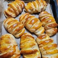 - 6 表面に刷毛で卵黄を塗り、焼き色が付くまで180℃のオーブンで15分ほど焼きます。