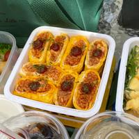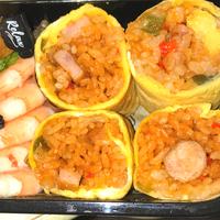 チキンライスが余ったのでお弁当にいいかなとチャレンジしましたが、ご飯を入れた後に巻くのが大変で形が崩れてしまいました。
