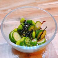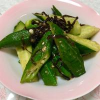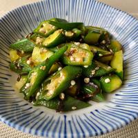 きゅうりとオクラの塩昆布和えはいかがですか。粘りのあるオクラと、シャキシャキとしたきゅうりに、ごま油が効いた塩昆布が絡んで、おいしいですよ。ぜひお試しください。
