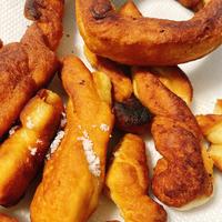 ひねりは半分にして大きめに仕上げました。半分は黒蜜もかけました。黒蜜かけない方は上品な甘さで、リピートしてでも食べたいです。油は米油を使いました。