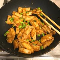 - 4 焼き色がついたら枝豆と(A)を入れさらに中火で3分ほど炒めます。