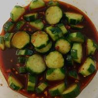 少しピリ辛でやみつきになる味の辛みそ和えきゅうりです。一度加熱した調味料に和えるので、きゅうりに味が馴染みます。ご飯のお供としてのお漬物代わりや、お酒のおつまみにもピッタリです!ぜひ作ってみてくださいね。
