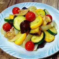 ズッキーニのジューシーな食感とトマトの弾ける食感が魅力的な一品です。緑と黄色のズッキーニ、トマトの赤が調和した彩り豊かな見た目も食欲をそそります。オリーブオイルで炒めた野菜にスパイシーなカレー風味が食欲をそそり、鶏もも肉や鶏ひき肉を加えるとボリュームアップ。玉ねぎ、アスパラ、ニンジンなど、お好みの野菜を加えてアレンジも楽しめる簡単レシピです。