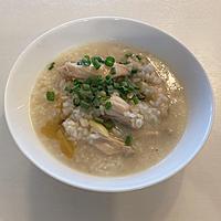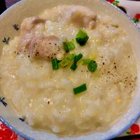 生姜が効いててポカポカ!寒い日に嬉しい、サムゲタン風のおかゆです。鶏もも肉から、たっぷりおだしが出て旨味たっぷり。中華のおかずと一緒に頂くのも、食欲のない日や、夜食にもピッタリです。是非お試し下さい。