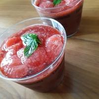 - 3 容器に注ぎ入れ、粗熱を取り、冷蔵庫で2~3時間冷やし固めます。チャービルを飾って完成です。