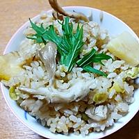 舞茸をたくさん使ってしまい、味が少し薄くなってしまいましたが塩ふたつまみと醤油小さじ1を追加して美味しく出来ました☺️舞茸の香りが良くて、旬の竹の子が美味しかったです⭕️