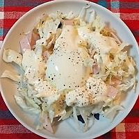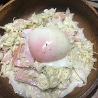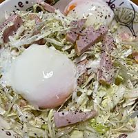 千切りキャベツとハムの温玉のせシーザーサラダ レシピ・作り方