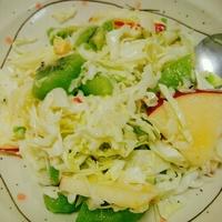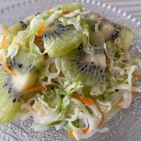 春キャベツとキウイのコールスローはいかがですか。甘味のあるやわらかな春キャベツと、さわやかなキウイの酸味が、マヨネーズベースのドレッシングとよく合い、とってもおいしいですよ。簡単に作れるので、ぜひお試しください。
