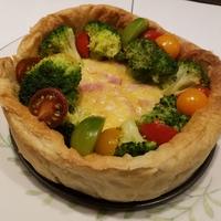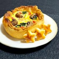 サクッと香ばしいパイ生地の中には、チーズがとろとろと溶け出す贅沢な一品です。ベーコンやミニトマト、ブロッコリー、ほうれん草、マッシュルームなど好みの具材をアレンジして楽しめます。パプリカや枝豆を加えると彩りも鮮やかに。生地は重石がなくても手でしっかり押さえれば作れます。生クリームを加えると、よりコクのある味わいに。見た目も華やかで、おもてなしやクリスマスメニューにぴったりです。