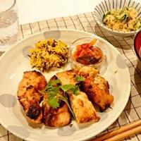 魚焼きグリルで皮目を上にしてアルミホイルを敷いて10分、中火で焼きました。ちょっと焦げちゃったので、次回は途中で皮目にもアルミを被せて焼きたいです。