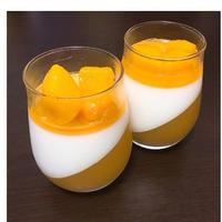 マンゴージュースと牛乳を使って作るゼリーです。グラスを斜めに傾けて固めるだけで、とってもお洒落で見た目も綺麗な、斜めの層のゼリーが作れます。マンゴージュースで作れるので、季節を問わずにお作りいただけますよ。ぜひ作ってみて下さいね。