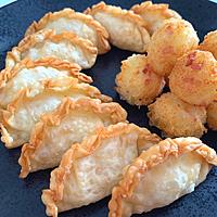 中のフィリングは、ホクホクトロトロとした食感にするため、生クリームを加えています。生クリームがない場合、牛乳や豆乳でも代用できます。また、ハーブソルトは岩塩でも代用ができます。 餃子の皮を使うことで揚げる時、表面に気泡が生まれ、サクッと仕上がります。食感は異なりますが、春巻きの皮やシュウマイの皮でも代用ができます。