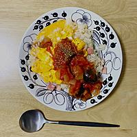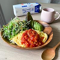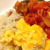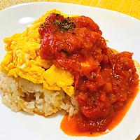 ご飯もトマトソースも卵も、火を使わず、炊飯器とレンジだけで簡単に作れました!夏には嬉しい!卵は、少し固まりすぎてしまいましたが、ふんわりとしてました。