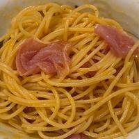 簡単に作れる、生ハムのカルボナーラ風はいかがですか。今回はベーコンの代わりに、生ハムを使って作るので、とても短時間でカルボナーラが作れます。卵黄と粉チーズのコクと生ハムの塩気が合わさり、おいしいですよ。ぜひ作ってみてください。