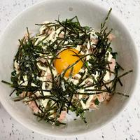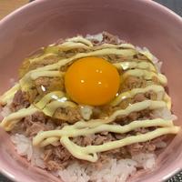 ツナの下に余っていた韓国海苔も散らしました!ネギとツナとマヨネーズが良く合う。卵黄がコクをプラスしてくれます。盛り付けるだけで簡単にできました。