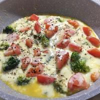 ブロッコリーとトマトで作り、チーズは粉チーズとピザ用チーズを使いました!