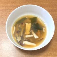 減塩の為、粒状だし以外の調味料を半分にしたけど美味しかった。出汁はかつお節。椎茸の代わりにえのきで。ワカメをお味噌汁以外で消費出来る貴重なメニュー