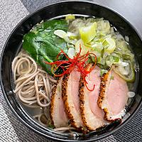 鴨肉は前日に余ったパストラミをのせました。スパイシーな鴨そばになり美味しかったです。
