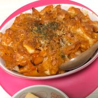 - 6 耐熱容器に入れて、ピザ用チーズを散らし、オーブントースターで10分程こんがり焼き色がつくまで焼いたら完成です。