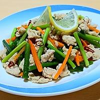 いつもの豚こまのニンニクの芽に、ナンプラー味で。メイヤーレモンを乗せました。美味しかったです。