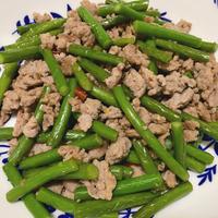 - 3 豚ひき肉の色が変わってきたら1を入れ、中火で炒めます。