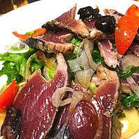 かつおを焼くときは直前まで冷やしてから焼くと、中まで火が通りにくくなります♪ 焼くときは強火にし、焼き加減は調節して下さい。 ①のたれは、オリーブオイルのかわりにごま油でも代用可能です。 辛いものがお好きな方は①のたれに輪切り唐辛子を追加しても美味しく召し上がれます。