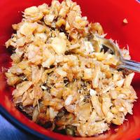 火が強いと焦げてしまうので、火力には注意してください。水気があるしっとりとしたものがお好みの場合は、水60mlを①と一緒にいれてください。そうすることで、しっとりとしたごはんのお供ができあがります。辛みが苦手な方は切ってから1分でも水にさらすことで独特の辛さが抜けますが、風味も落ちてしまうのでさらしすぎないようにしてください。