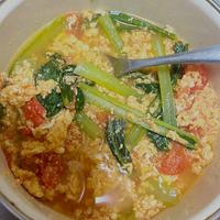 トマトは1個、小松菜は冷凍カット小松菜を使用したので分量は適当。