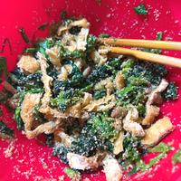 - 4 水気を絞ったほうれん草と油揚げを入れ、さっくり混ぜて完成です。