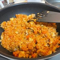 玉ねぎ、鶏肉、マッシュルームの水分が多めに出ていたのでケチャップの量を減らしてみました。