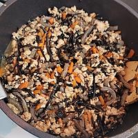- 1 ひじきはパッケージの表記通りに水で戻し、流水で洗い、水気を切ります。