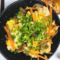 ほっとする味!豆腐とこんにゃくの卵とじ丼 レシピ・作り方
