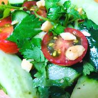 あっさりしていますが、ピーナッツがアクセントになっていて、とても美味しいです。気軽にエスニックな味が楽しめるので、パクチーがあるときにはまた作りたいです。