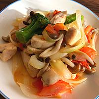 - 4 中火で熱したフライパンにごま油をひき、3を入れ鶏ささみに火が通るまで3分程度炒めます。1を加えしめじがしんなりするまで炒めます。