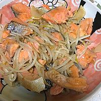 鮭が崩れないように、もやしを炒める時に、鮭を端に寄せてから炒めました。美味しくできました♬