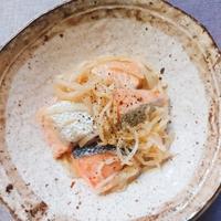 アジの塩焼きを予定していましたが、入荷がなく塩鮭に変更。もやしもあったのでリピートでこのレシピにしました。塩鮭は切らずに焼いて、もやしは別に炒めて盛り付けました。